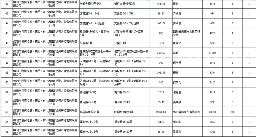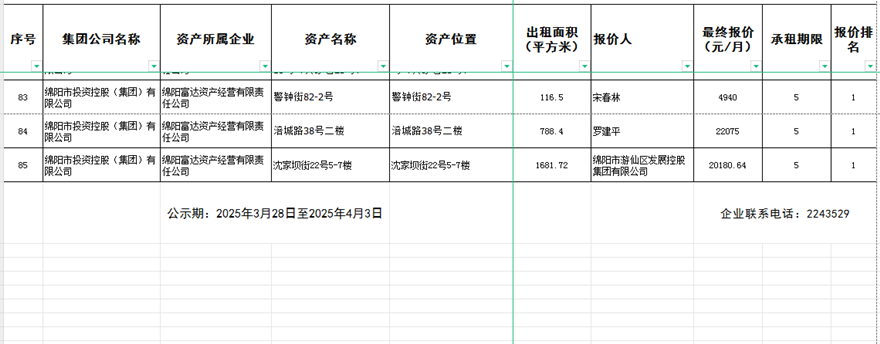 绵阳富达资产经营有限责任公司出租结果公示