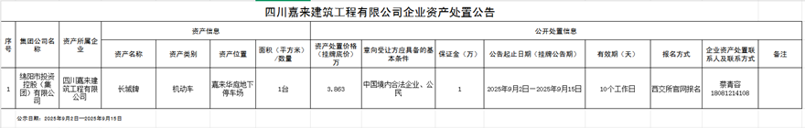 四川嘉来建筑工程有限公司企业资产处置公告