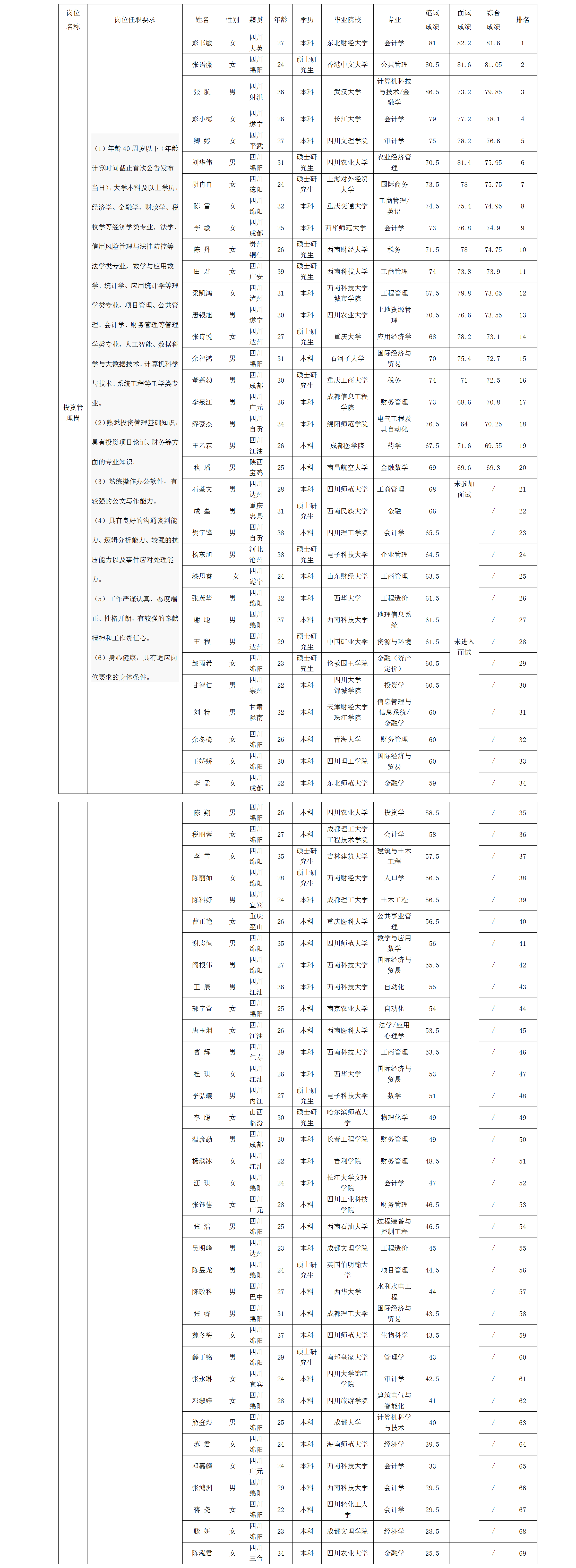 根据欧宝app发布的招聘公告及招聘相关规定,经笔试、面试等程序,现将笔试(面试)成绩予以公示。
