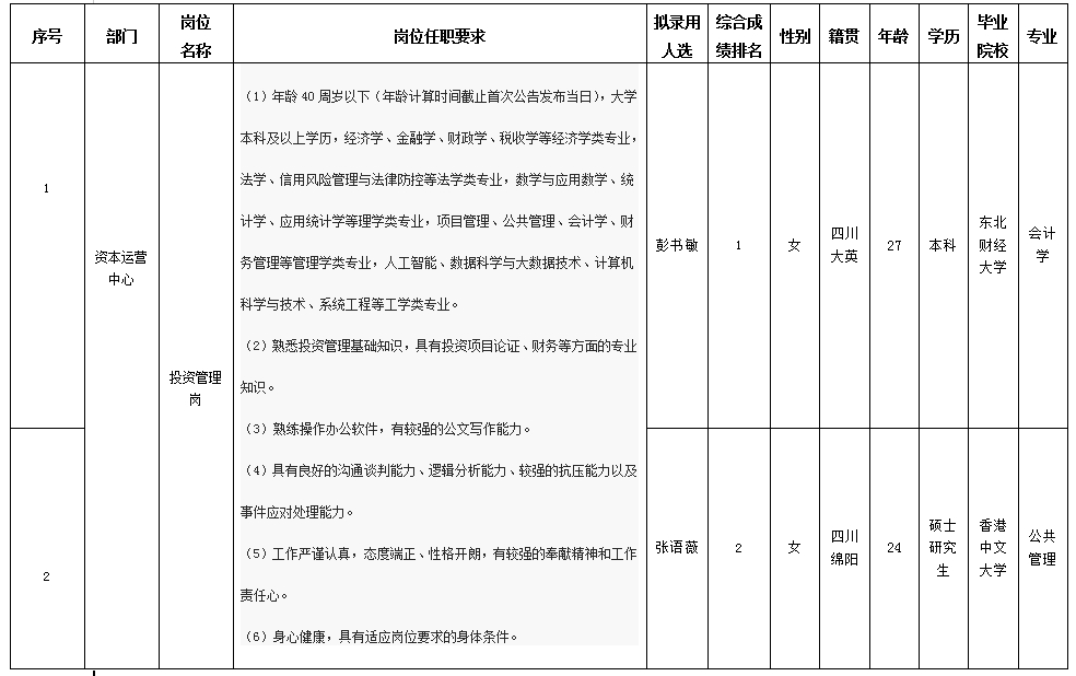 根据欧宝app发布的招聘公告及招聘相关规定,经笔试、面试、考察、体检等程序,拟录用彭书敏等同志到欧宝app工作,现予以公示,具体情况如下:
