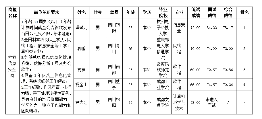 根据绵阳市绵投商业运营管理有限责任公司发布的招聘公告及招聘相关规定,经笔试、面试等程序,现将笔试(面试)成绩予以公示。