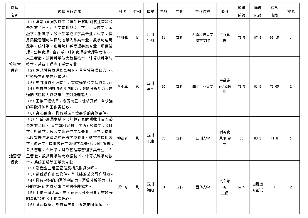 根据欧宝app发布的招聘公告及招聘相关规定,经笔试、面试等程序,现将笔试(面试)成绩予以公示。