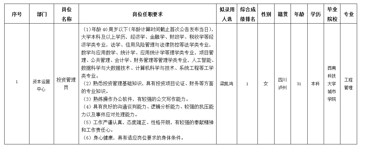 根据欧宝app发布的招聘公告及招聘相关规定,经笔试、面试、背调等程序,拟录用梁凯鸿同志到欧宝app工作,现予以公示,具体情况如下: