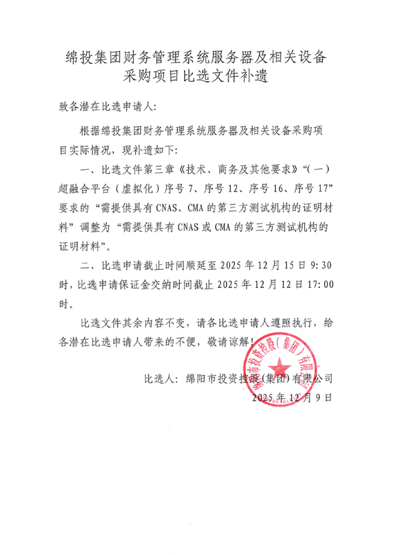 欧宝app财务管理系统服务器及相关设备采购项目比选文件补遗