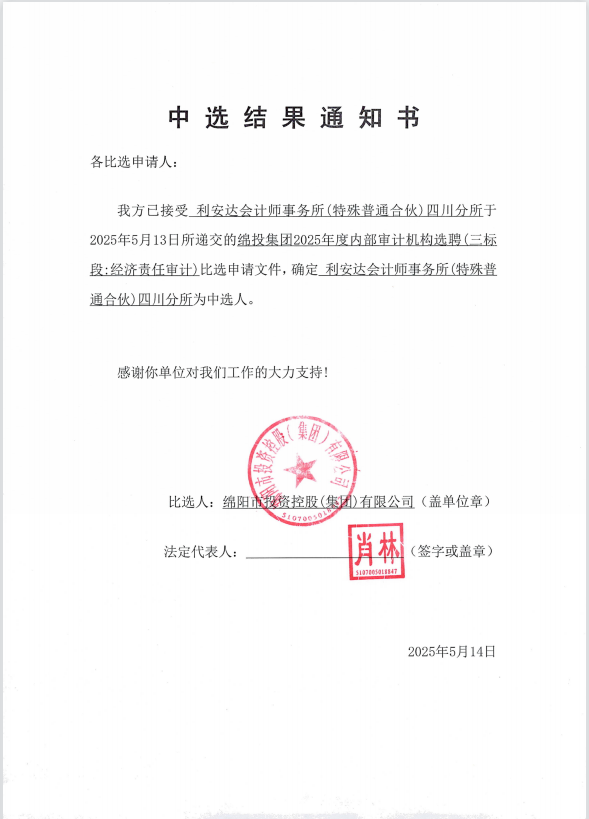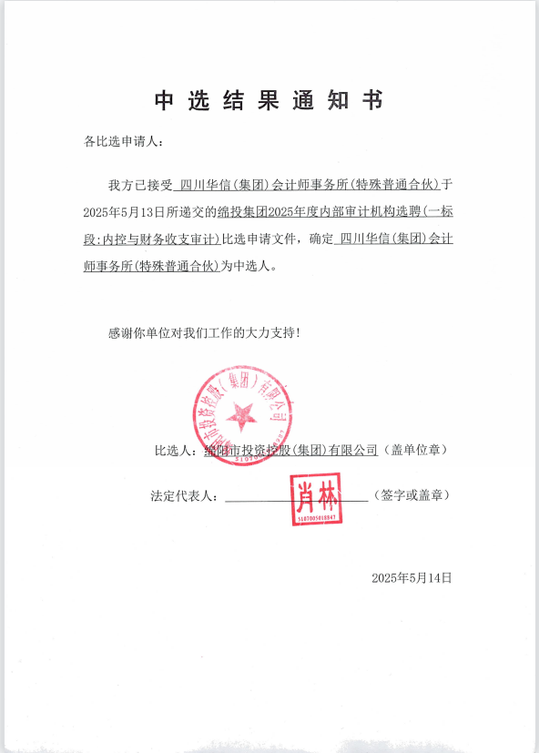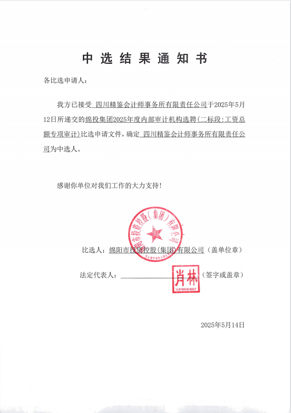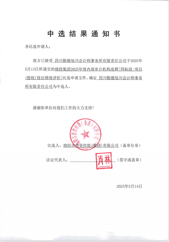 欧宝app2025年度内部审计机构选聘中选结果通知书