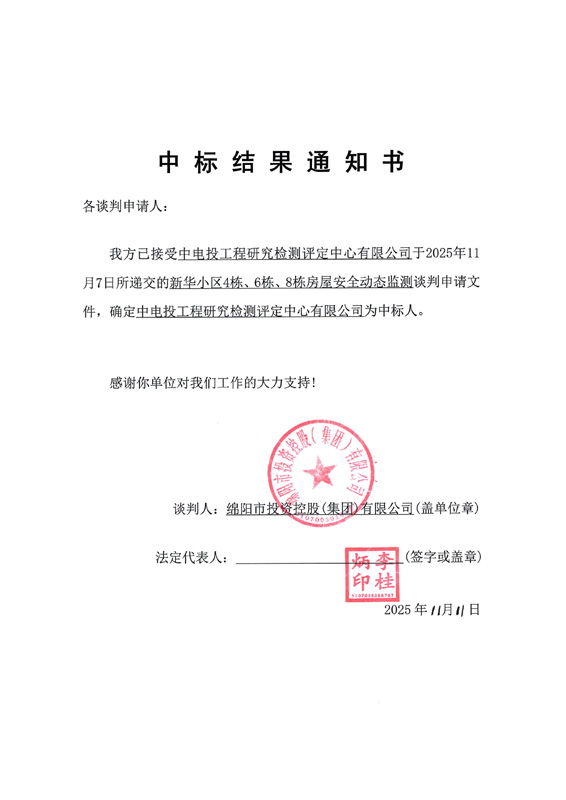 新华小区4栋、6栋、8栋房屋安全动态监测中标结果通知