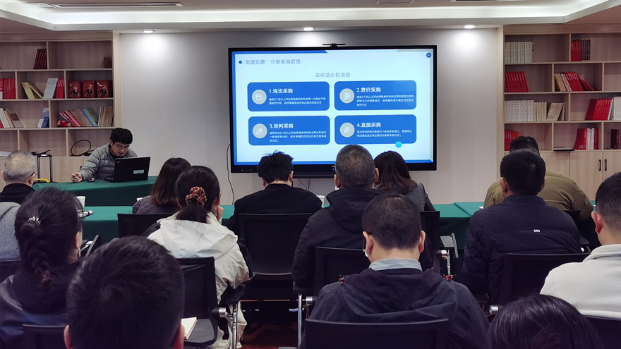 分享会由绵投商管产权交易部、财务管理部、综合管理部的四名青年业务骨干主讲,聚焦“招标与采购、国有产权交易、财务执行规范、内控合规管理”四大核心板块,通过“政策解读+流程图解+案例剖析”三位一体的讲解方式,重点阐述业务工作的规范要求,提示了关键风险控制节点,助力各部门实现业务全流程闭环管理。随后,围绕公司治理效能提升,引领员工深入解读了“三重一大”决策制度的最新修订要点,通过厘清决策事项清单和权限边界,为经营工作中的规范决策奠定了坚实基础。